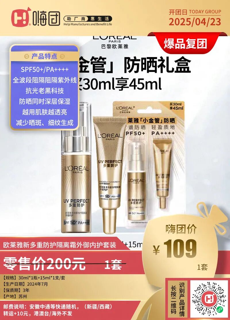 欧莱雅新多重防护隔离霜外御内护套装 109元1套‼