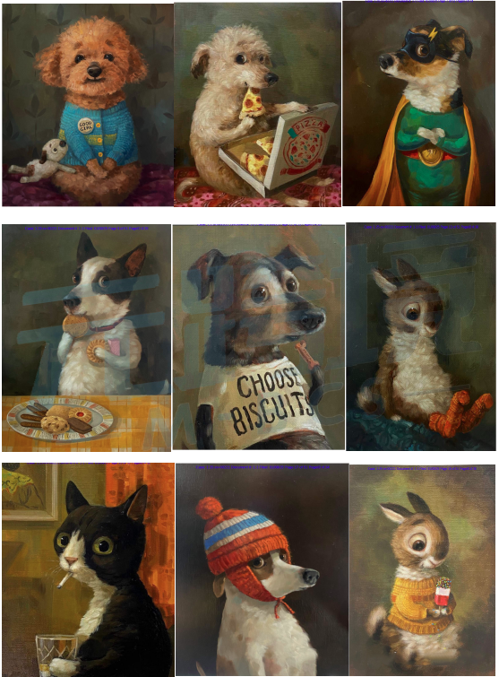 原告是Alison Friend是一位英国现实主义艺术家,拥有现代视角,1973年出生。Friend毕业于诺丁汉特伦特大学,获得美术和版画学位,并成为诺丁汉市首批女性石匠之一。作为一名多产的儿童读物插画家,她已出版超过20本作品,与多家知名出版社合作。她的油画融合古典技法与现代趣味,创作幽默的动物肖像,捕捉猫、狗等动物的拟人化滑稽瞬间,其别具一格的拟人风格广受赞誉。