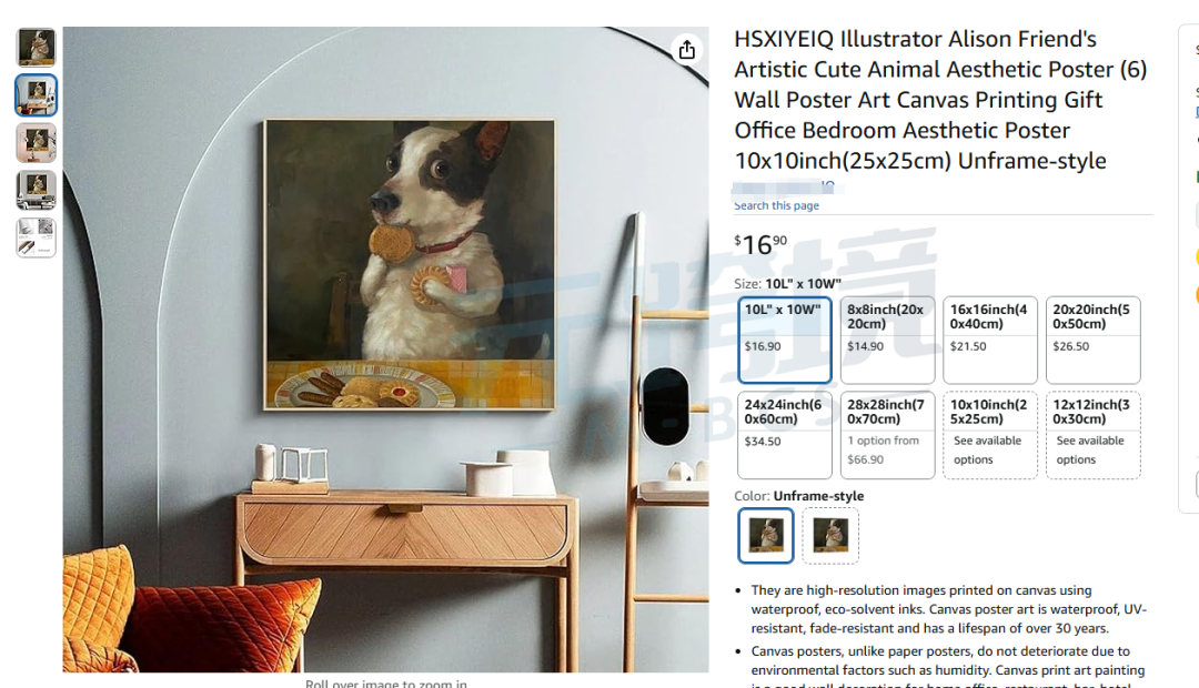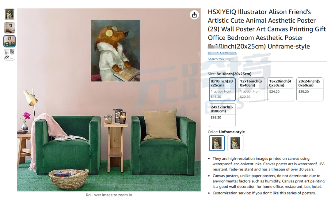 本案涉及版权画作较多,跨境卖家注意不要随意使用下面图片售卖产品,以免侵权