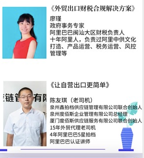 在这特殊的日子,造梦者南安办公室举办了一场出口财税沙龙~本次沙龙特邀政府事务专家、阿里巴巴闽汕大区财税负责人—廖瑾,和泉州鑫拍档创始人、15年外贸代理老司机、阿里巴巴认证讲师—陈友琪,以及资深跨境电商专家—张辅铁,三方一起给我们的客户做出口财税相关知识的解读~