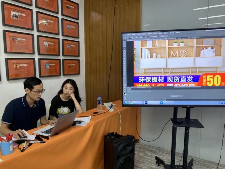 ▲造梦者运营团队设计黄敏与外援黄健全一起为学员讲解PS图片处理技巧