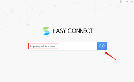 安装完成后,双击桌面的 EasyConnect 客户端快捷方式,服务器地址栏里填入VPN地址:https://vpn.dufe.edu.cn ,然后回车。
