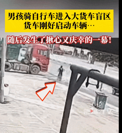 10月3日,河北廊坊发生了一起惊险交通事故:一名男孩骑自行车时,不慎进入大货车的视觉盲区。此时货车刚好启动,直接将男孩撞倒,自行车也被卷入车轮下碾轧。