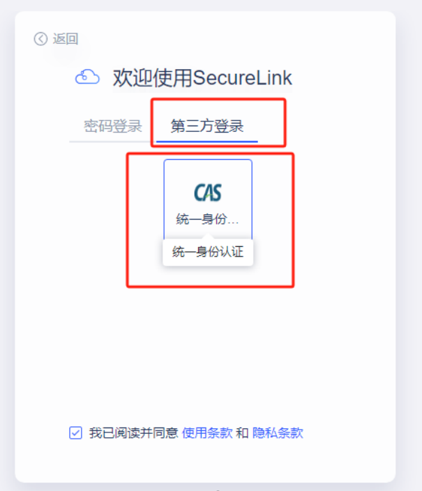 · 勾选 已阅读并同意使用条款和隐私条款 ,再次登录,不用重新勾选