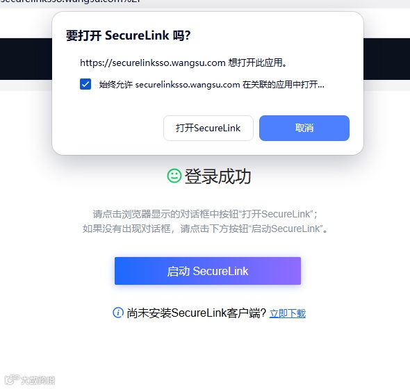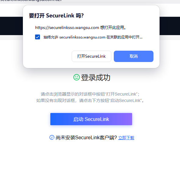 点击登录后,若浏览器提示“是否打开SecureLink”,请选择打开。登录成功后,用户状态为在线,显示 工作台 界面