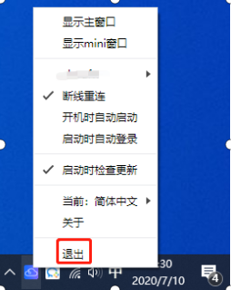 如果要退出软件,在系统托盘,点击 鼠标右键,点击【退出】即可