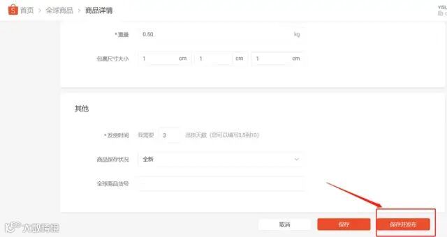 如果您需要修改或确认商品信息后,可以点击【编辑】进入商品详情页,确认完信息之后,点击【保存并发布】。