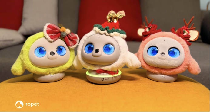 萌友智能推出的首款人工智能机器宠物Ropet也是以毛绒玩具为外观设计,内置本地AI模型和语音模块。但它是从女性情感赛道切入,聚焦30代女性白领群体,可以和用户进行直接的语言交流,也能够识别用户的动作和情绪,具有很强的拟真感和交互性。