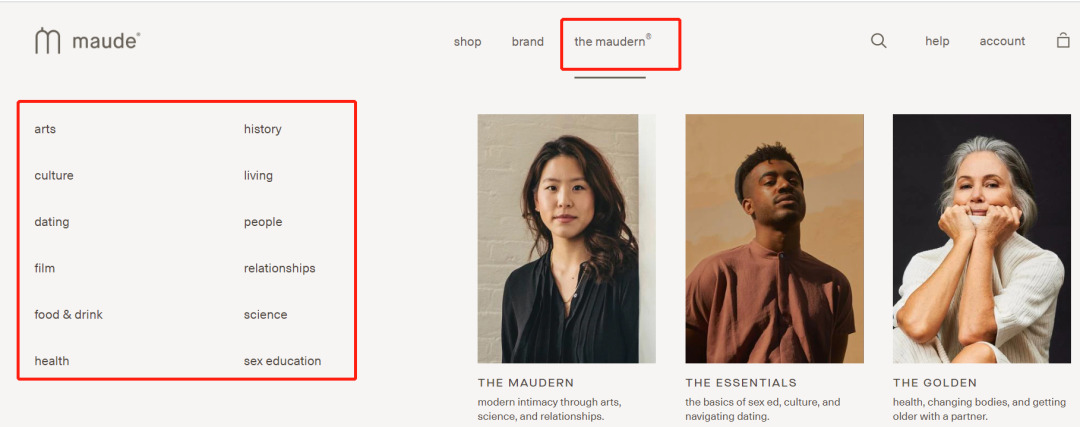 而MAUDE则是利用SEO,将自然流量发挥最大值。它在官网设置了博客区,并取名为Maudern(谐音Morden),该专区是为喜欢现代艺术的群体设计了完整的视觉表达和博客内容。