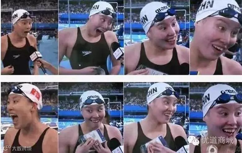 游泳游出个洪荒之力,比亚军慢一点点,戏说:“可能我的手比他短一点点吧!”对于获得铜牌的自己,直言毫无保留,对自己的成绩十分满意。然后爽朗地笑着跑开,留下一脸茫然的记者。大家都为这个乐观直爽的中国姑娘点赞,同时她的一系列表情也火遍整个网络。