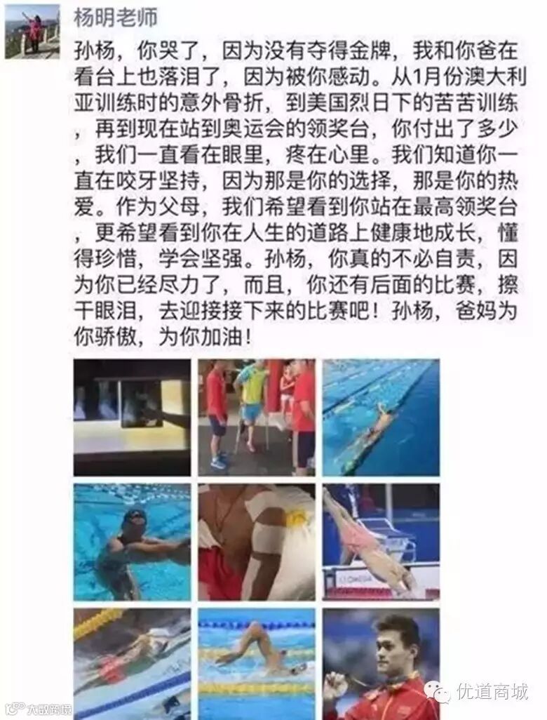 在错失金牌后,孙杨抱着一位女记者失声痛苦,泪水浸湿了女记者的衣服。25岁的孙杨,其实也就是一个大男孩,身上承载着太多的期待与压力。之后父母微博发文力挺孙杨,得到全民点赞认可。如今的大家已经不再是“唯金牌论英雄”,更多关心的是选手金牌之路努力付出与不容易,为孙杨点赞。后孙杨摘得桂冠,事实也证明了他的实力。