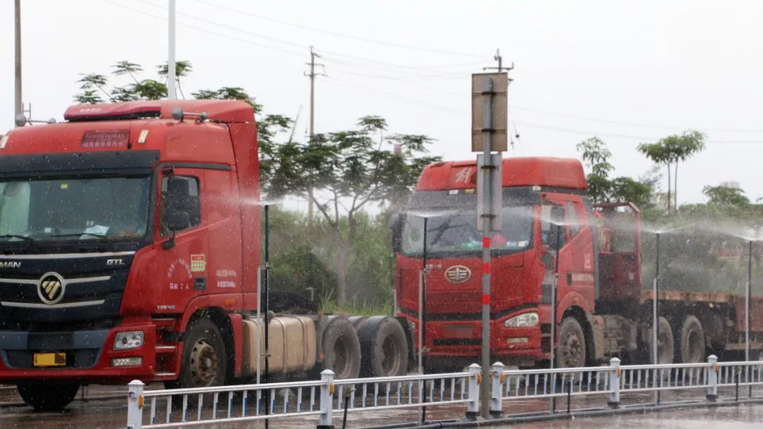 在9个重点扬尘区域中,东门因各类货车进出较多,扬尘问题比较突出。为此,综合管理部组织技术人员深入研究,主动对标其他企业的抑尘经验,自主创新设计并制作“喷射+喷雾”双模式抑尘系统,取得较好的抑尘效果。
