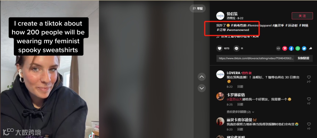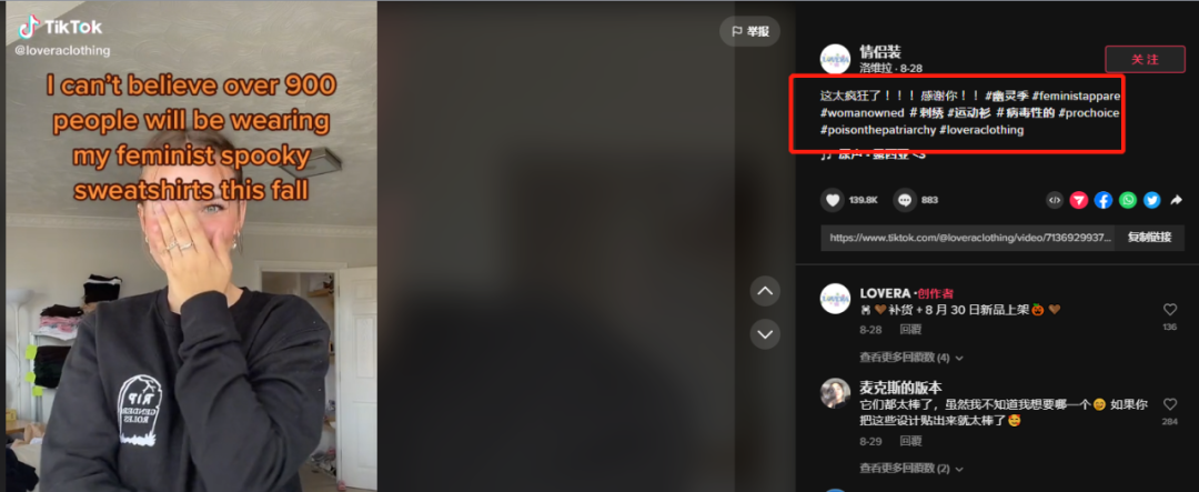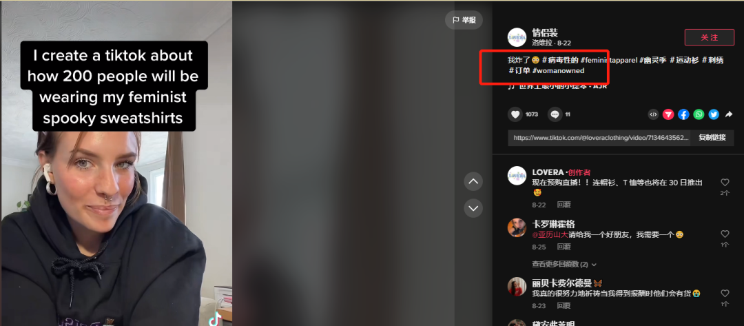 最近,在外网就有这样一对年轻的英国夫妻火了,他们通过借助 TikTok 带货自有女权品牌服饰,一天狂赚 2.2 万英镑!