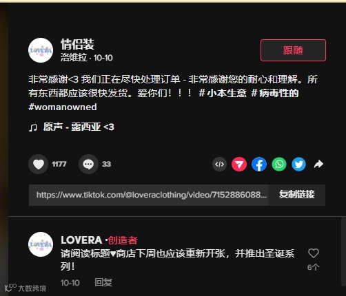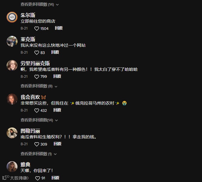评论区挤满了求购的用户,品牌也在一夜之间风靡 TikTok ,收到数百个订单。