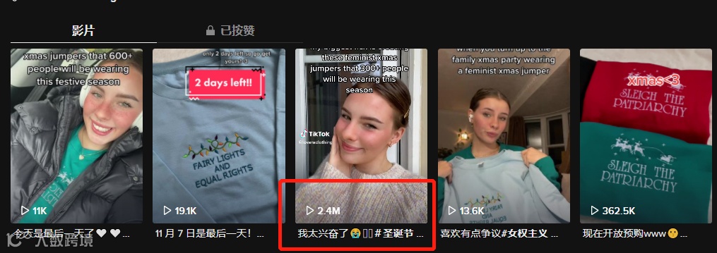 让人恰柠檬的是,在处理完 8 月份的订单后,他们又在 TikTok 上发布了圣诞款衣服的上架视频,结果再度爆红,单视频浏览量再度破百万,至今已达 240 万次。