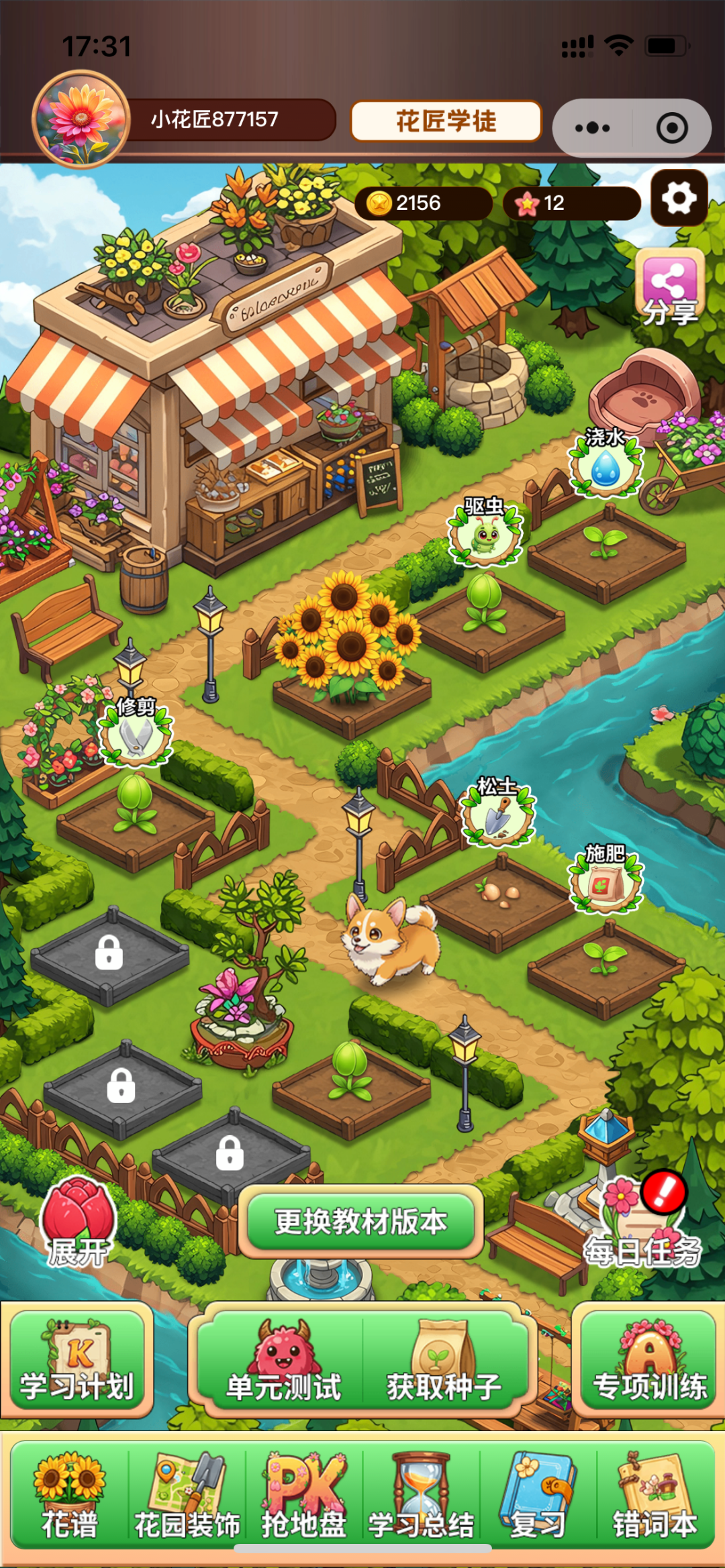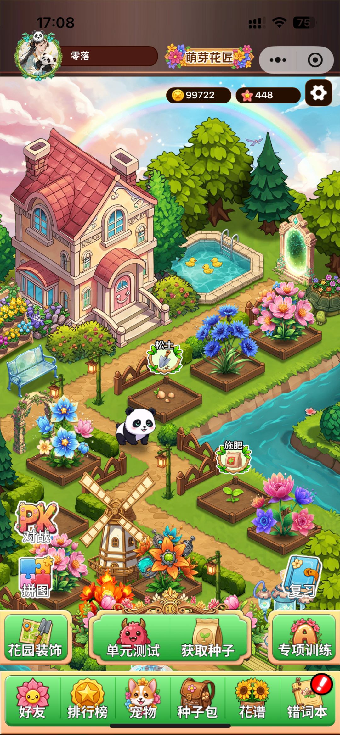 在『超级单词花园』中,创新推出“获取种子—松土—施肥—浇水—驱虫—修剪—浇水—收花”的游戏化学习环节,精准对应单词学习中不同维度的测试过程。孩子可以将一粒粒学习的种子,培育成一朵朵美丽的花朵,在趣味操作中完成学习任务,收获成长喜悦。