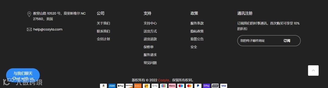 关于社媒方面的运营,在站内未发现社媒post,底部导航也无社媒账号的相关链接,并且在主流的社交平台(如Facebook、Instagram、YouTube等)也未找到Cozyla的相关注册,或许可说明他们还未开始布局社媒渠道。