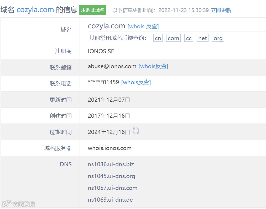 其独立站域名cozyla.com创建于2017年,于2021年12月进行更新。