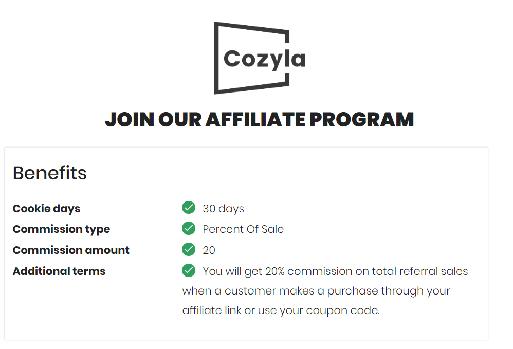 低成本的营销方式,当客户通过会员链接或优惠券代码进行购买时,将获得总推荐销售额的20%的佣金。