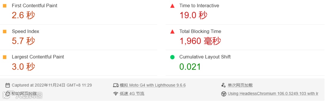 据测试,其FirstContentful Paint、LargestContentful Paint均超过了2秒,加载速度相对较慢。