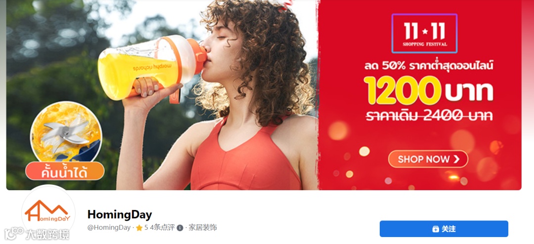 Facebook的banner图与独立站的banner图一致,重点宣传双十一的活动,包括帖文也正在围绕这一话题进行。