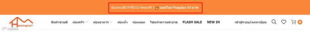 顶端囊括了重要信息,购物满599泰铢可享受免邮;添加line,即可获得50泰铢,这是较值得借鉴的一点,可精准增加私域流量;