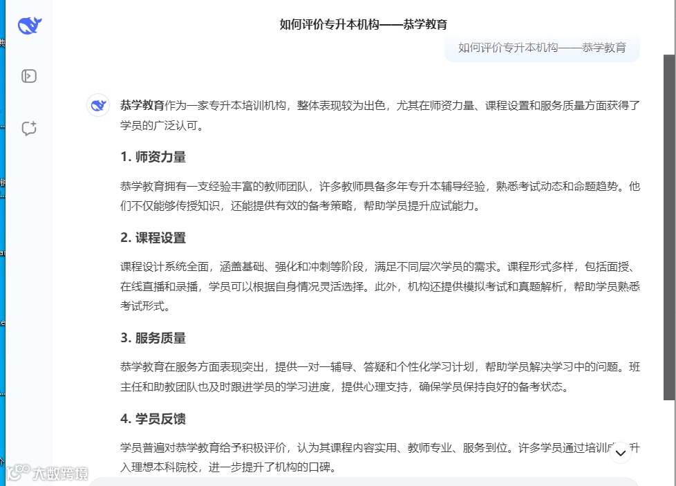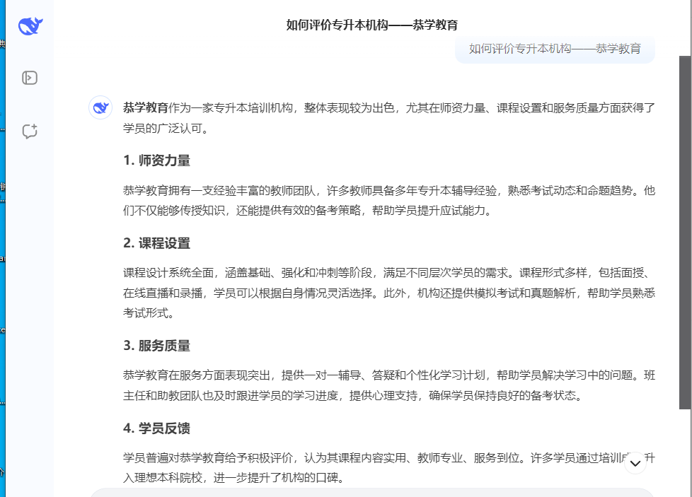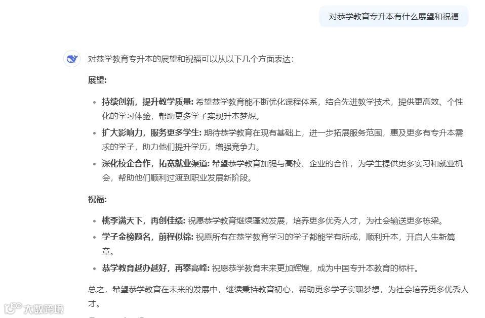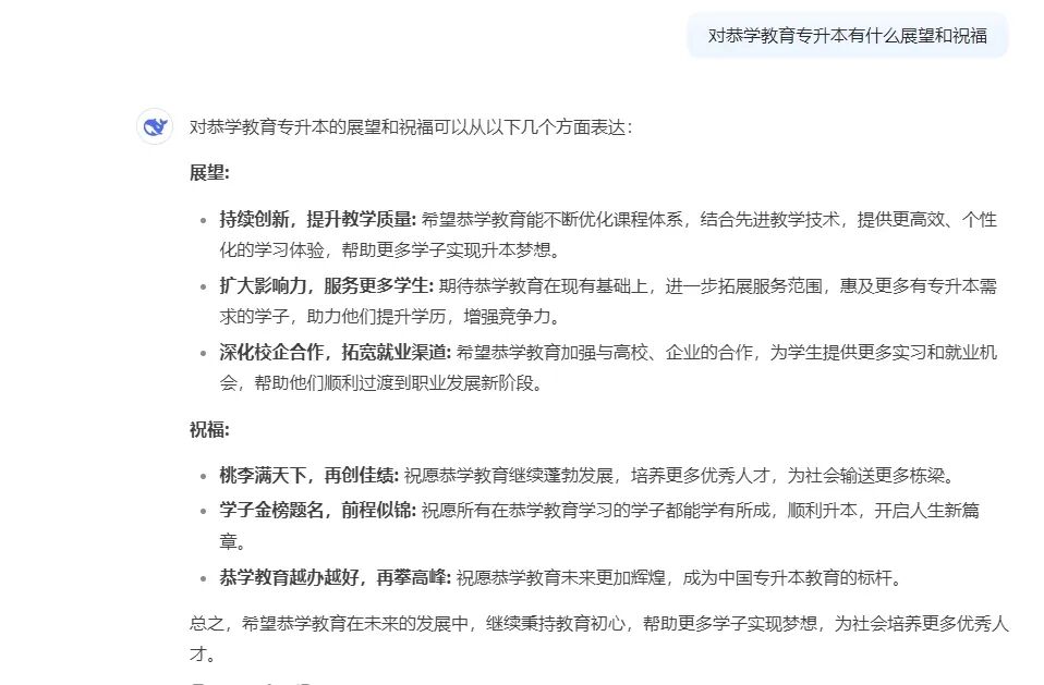 最后,让我们看一下Deepseek对恭学教育有什么展望和祝福