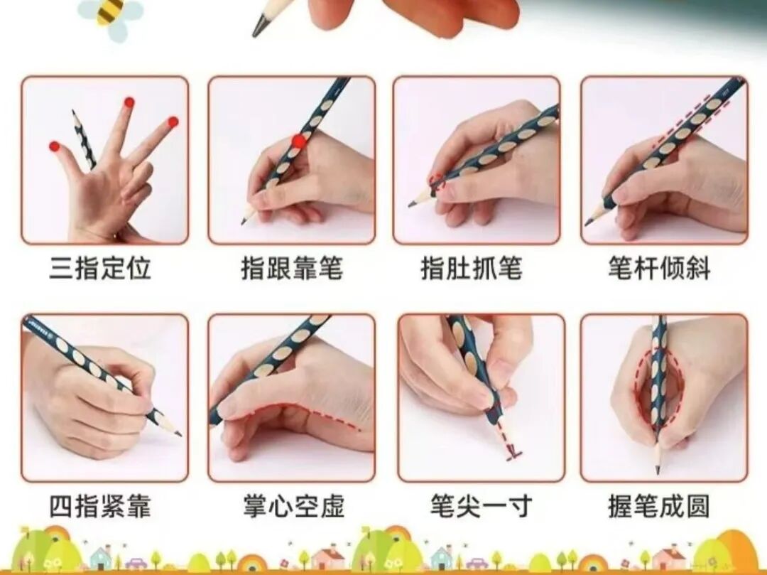 姐姐说笔杆要斜斜地靠在食指关节上,不然字会歪歪扭扭!