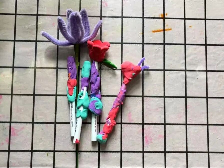老师的话:《指南》在艺术领域“表现与创造”目标中指出:“能用多种工具、材料或不同的表现手法表达自己的感受和想象”,孩子们在废旧丙烯马克笔装饰活动中,通过多元手法赋予废旧物品新的艺术生命,展现出独特的审美表达与创造能力。