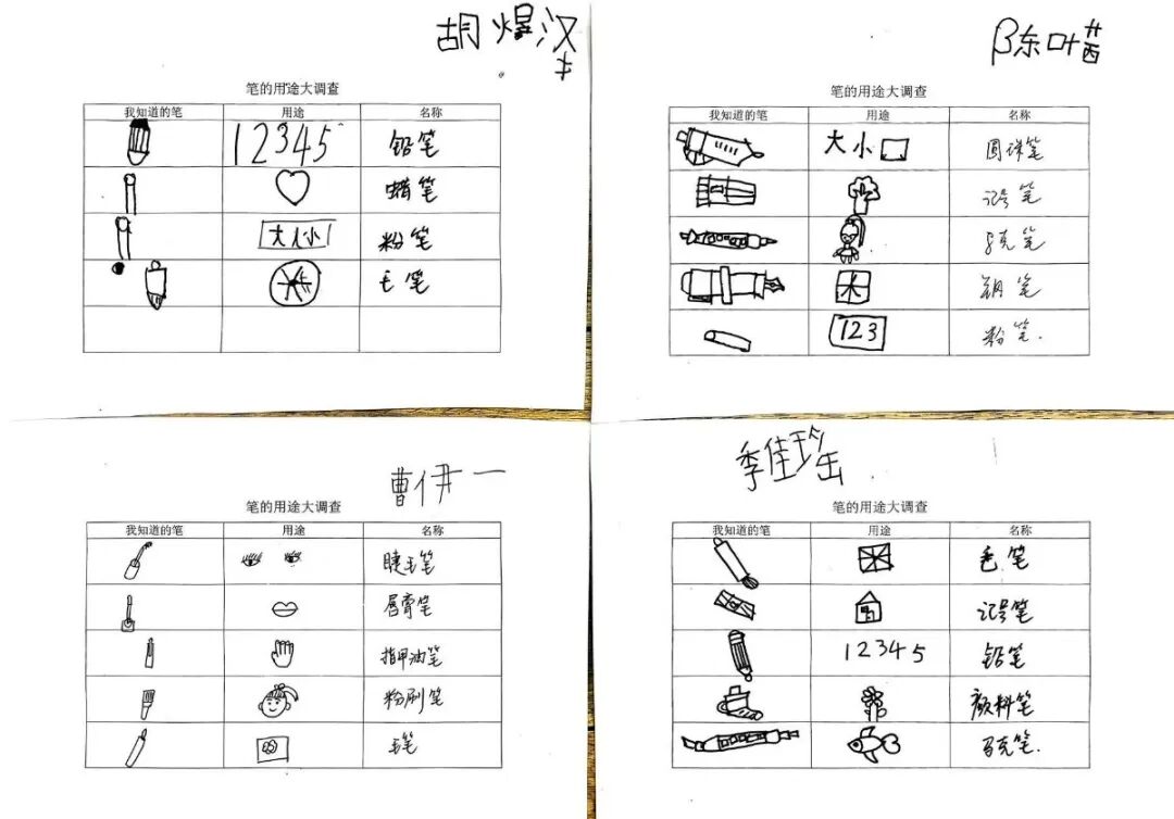 老师的话:根据《指南》,大班幼儿展现出对生活中“笔”的敏锐观察和深度思考,他们能从马路上的划线笔联想到化妆笔、毛笔、荧光笔等不同类型,并用“软软的”“夜晚能看见”等语言精准描述笔的特征,这正是幼儿通过观察、比较发现事物异同的科学探究能力的体现。同时,孩子们将家庭、社会场景中的笔与日常认知结合,主动分享生活经验,符合该年龄段“对感兴趣的问题刨根问底”的发展特点。