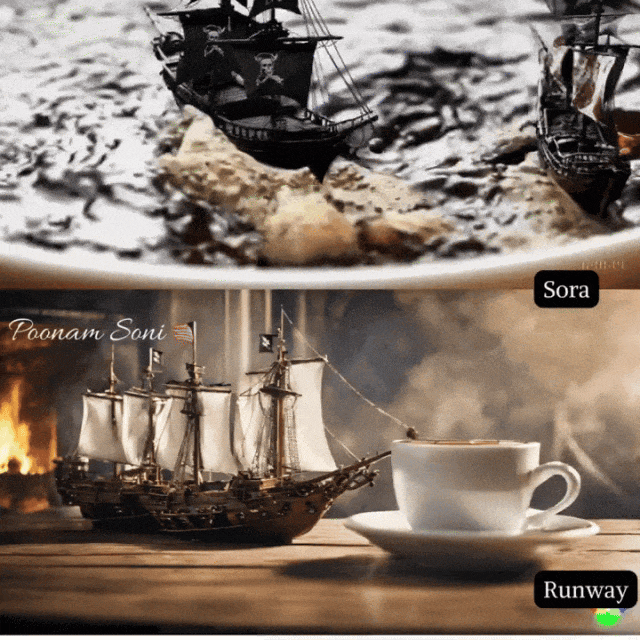 “Sora”和另一款视频Ai生成工具“Runway”的比较 视频来源:twitter@ @Poonam Soni