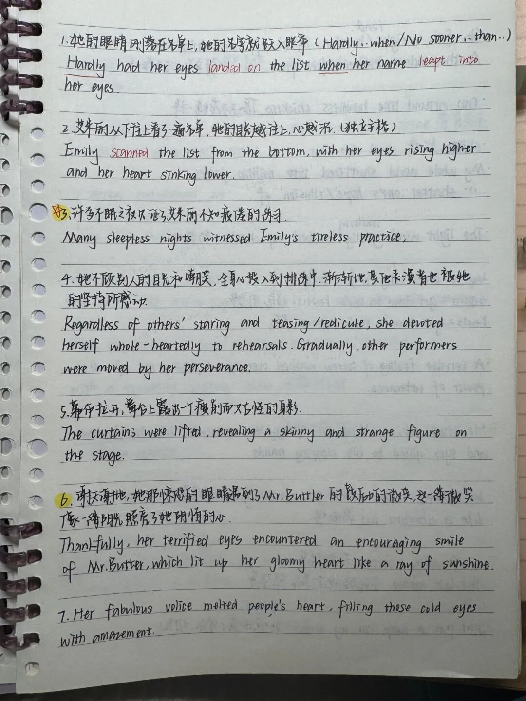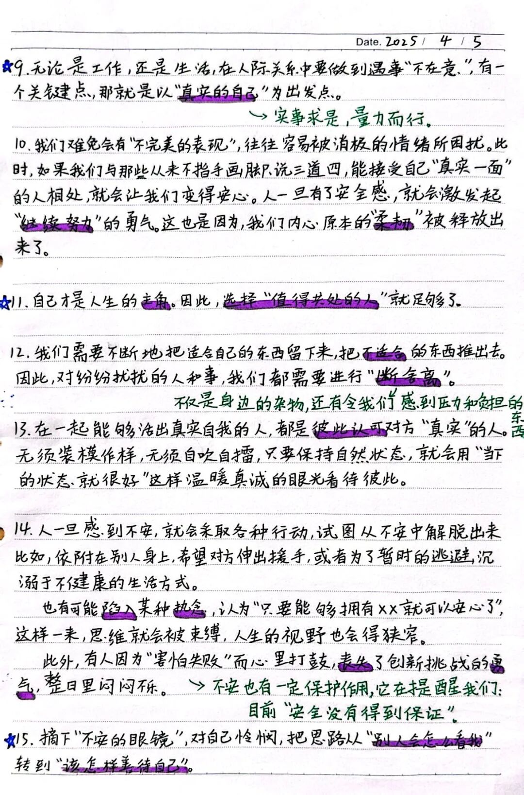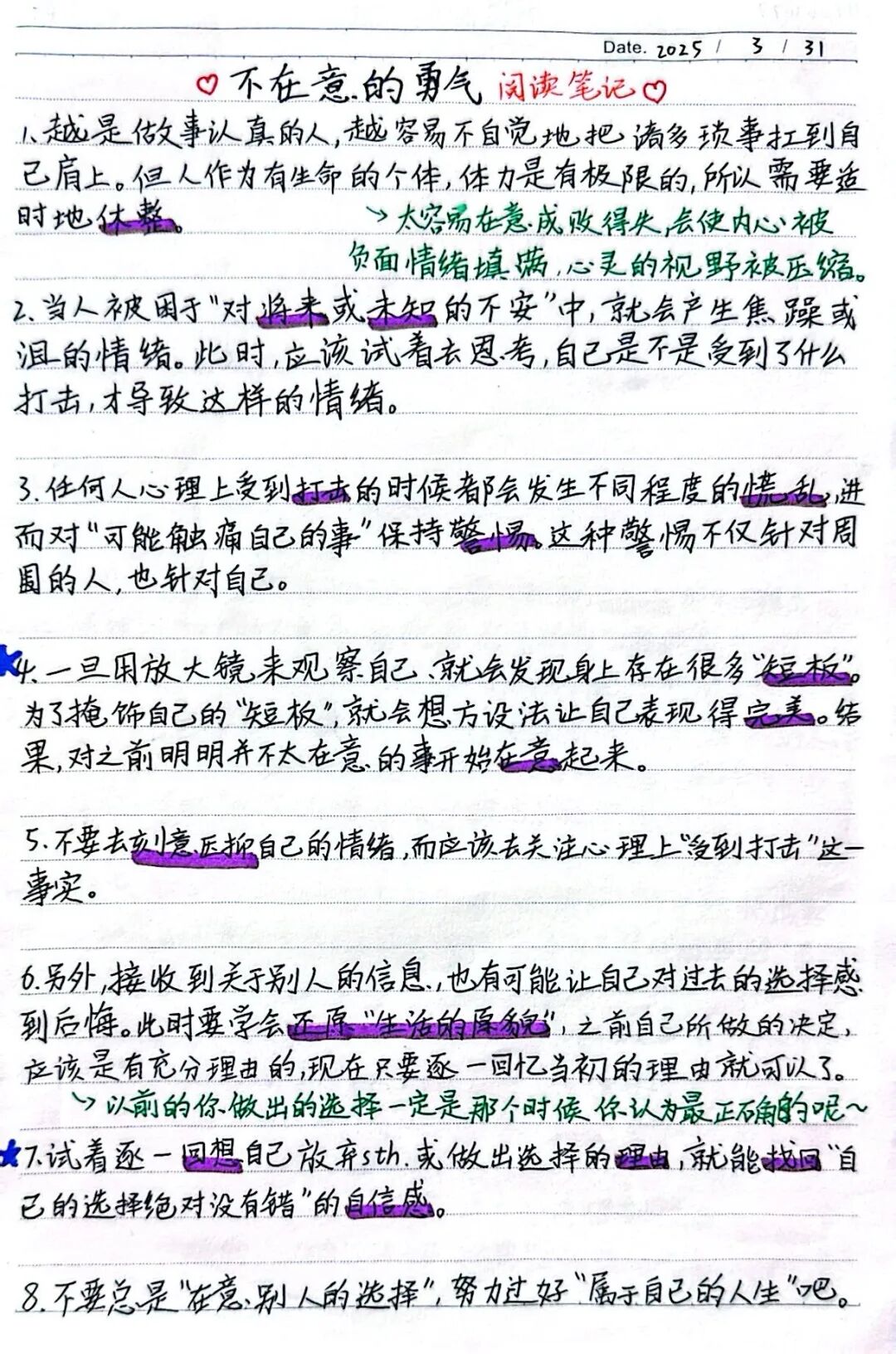 2.笔记符号:蓝星,重要句子;紫线,关键词语;绿字,自我思考。