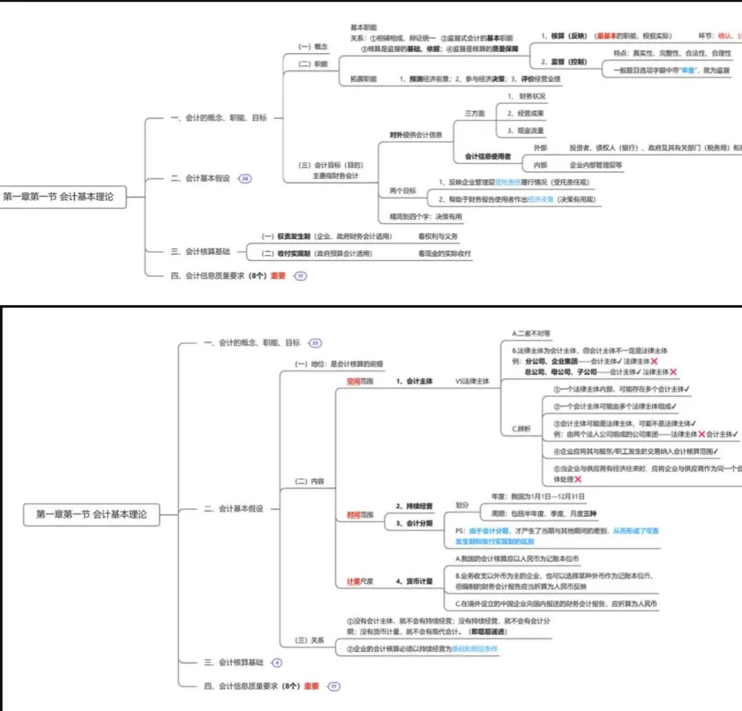 我是2023级阳明创新2班会计学专业的李浠旖。这份读书笔记涵盖会计学原理和管理会计。这两门课程有着共同特点:知识点多且繁杂,且各章节之间有着较强的连贯性,综合性高。对于该类课程,思维导图能帮助我较好梳理知识脉络,辅助学习。一方面思维导图的层级结构和图表的可视化呈现,能让知识逻辑关系一目了然;不同的颜色标记更能突出重点,提高复习针对性。另一方面,思维导图能较好串联起分散在不同章节的知识点,通过整合减轻记忆负担。