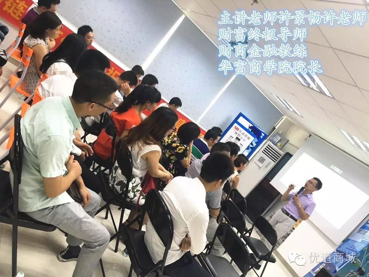 许景畅老师为大家介绍了优道商城概要情况。从优道商城的经营范畴、渠道及优势,谈到创始人蓝总建立优道商城的初忠,再到如何加入优道商城,创造属于我们的财富,成就我们的人生价值。他的讲话让大家为之欣喜,产生强烈的共鸣!