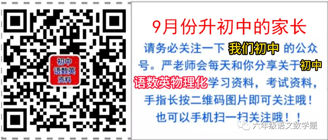 每天和你分享关于小学学习资料,考试资料,手指长按二维码图片即可关注哦!