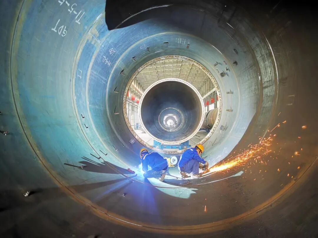 中水四局(塔城)能源装备有限公司风机塔筒制造车间。