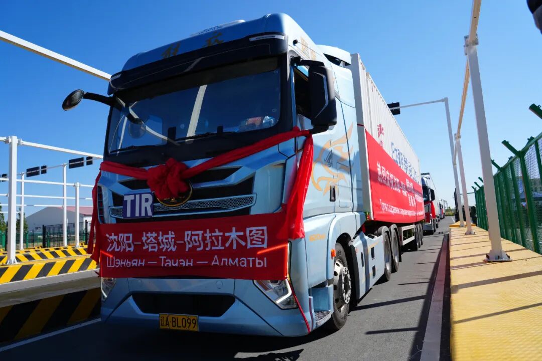 TIR国际公路运输(沈阳—塔城—阿拉木图、莫斯科)通关首发仪式。