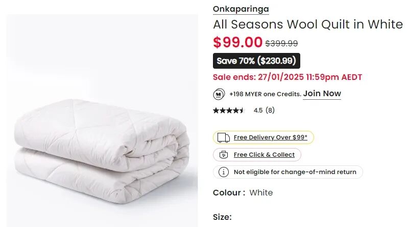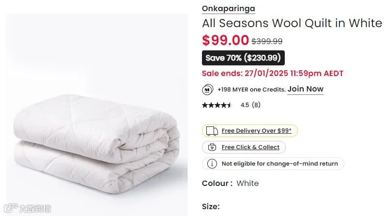 Onkaparinga羊毛被有2年保修期,保证耐用性和舒适性。