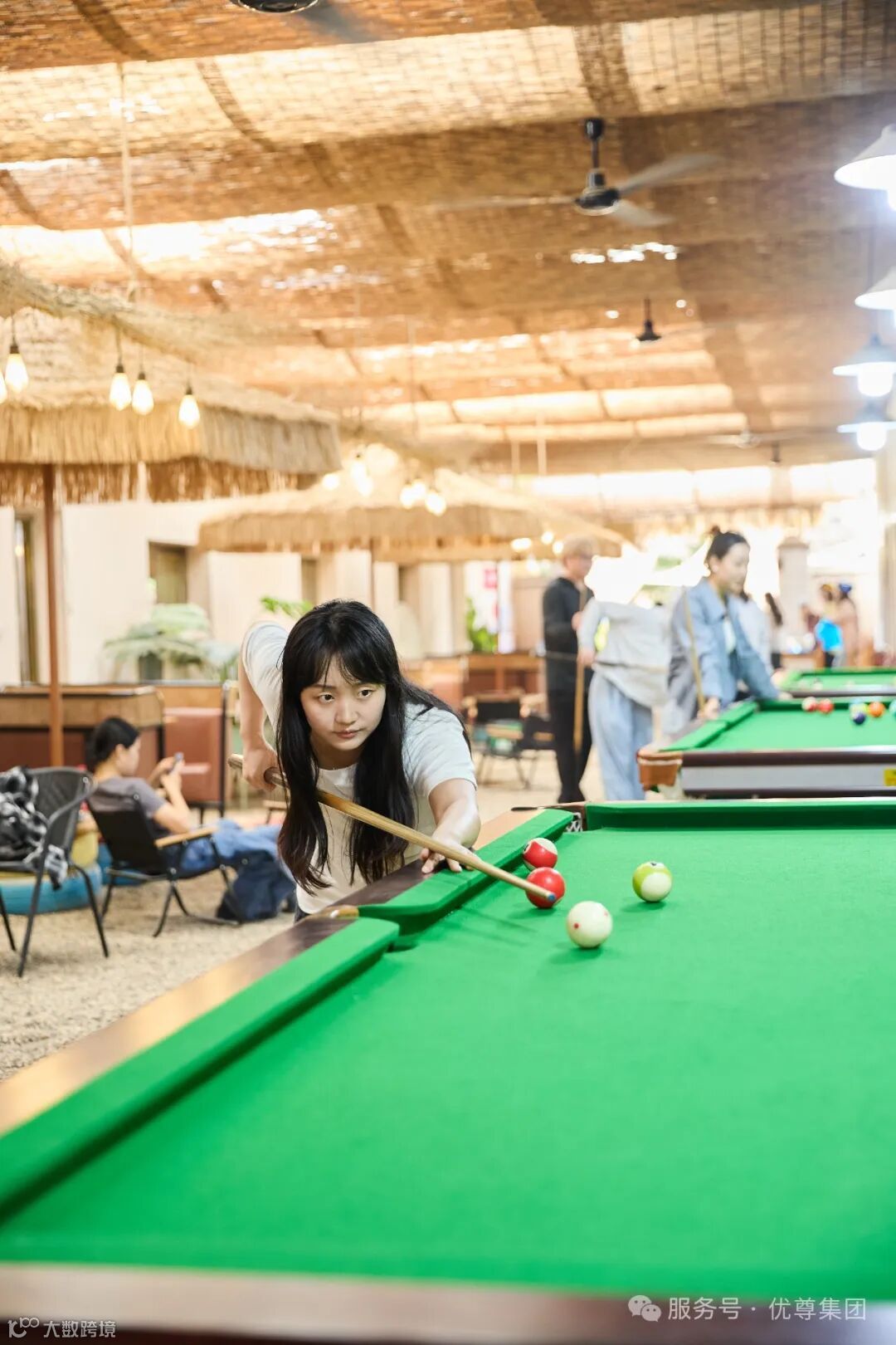 唱歌、桌游、台球、乒乓球等活动也轮番上场。在露天的舞台上,大家一展歌喉,用歌声传递快乐;桌游区里,智慧的碰撞与策略的较量让人沉浸其中;台球和乒乓球桌旁,精彩的对决让人不觉为其加油鼓劲。整个营地沉浸在欢乐的海洋中,成为了大家释放压力、增进情谊的乐园。
