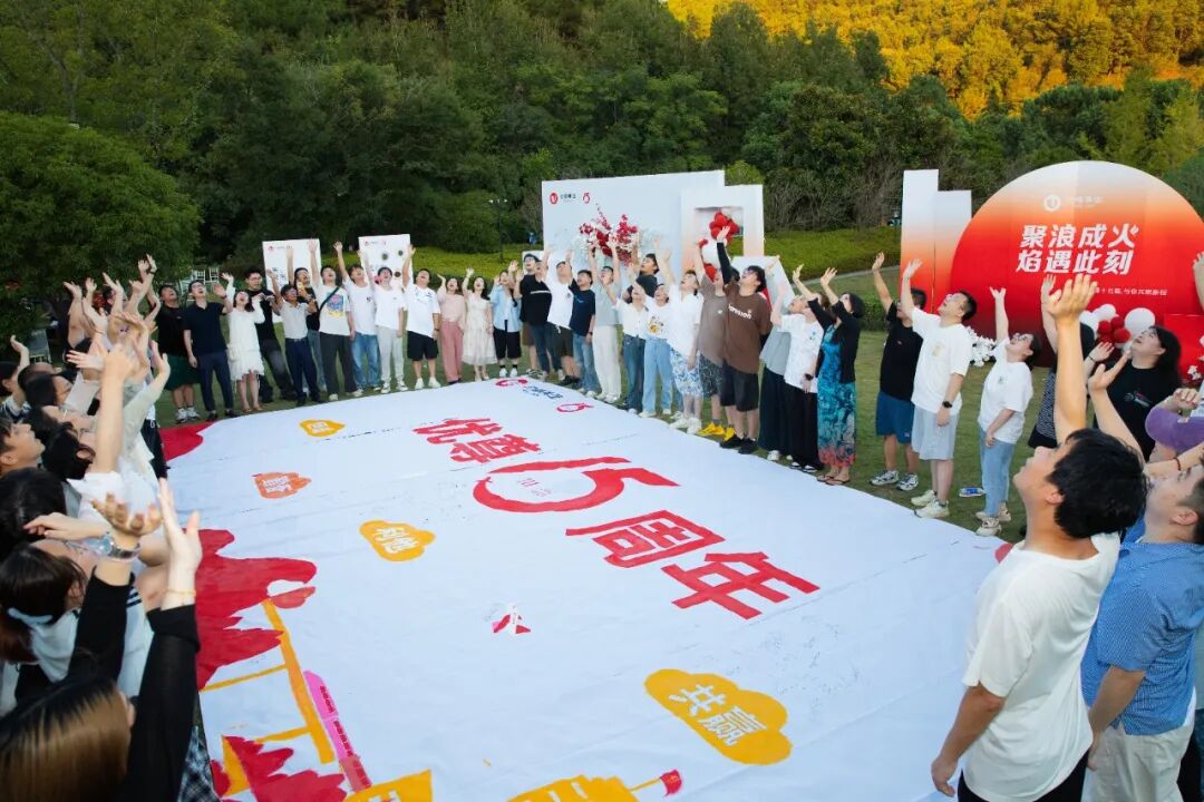 当湖畔的风拂过草坪,“共绘蓝图”的启幕,像是为十五周年庆典铺展开一页满含期许的诗行 —— 这不仅是一场集体创作,更是优尊人将过往的坚守、当下的默契与未来的憧憬,一笔一画凝注于色彩间的仪式。80 双承载着不同故事的手,此刻共同握住了画笔;5组跨越地域的身影,在草坪上舒展成协作的剪影。蓝图组件上的线条尚未晕染,却已藏着每个人对 “聚浪成火” 的理解。