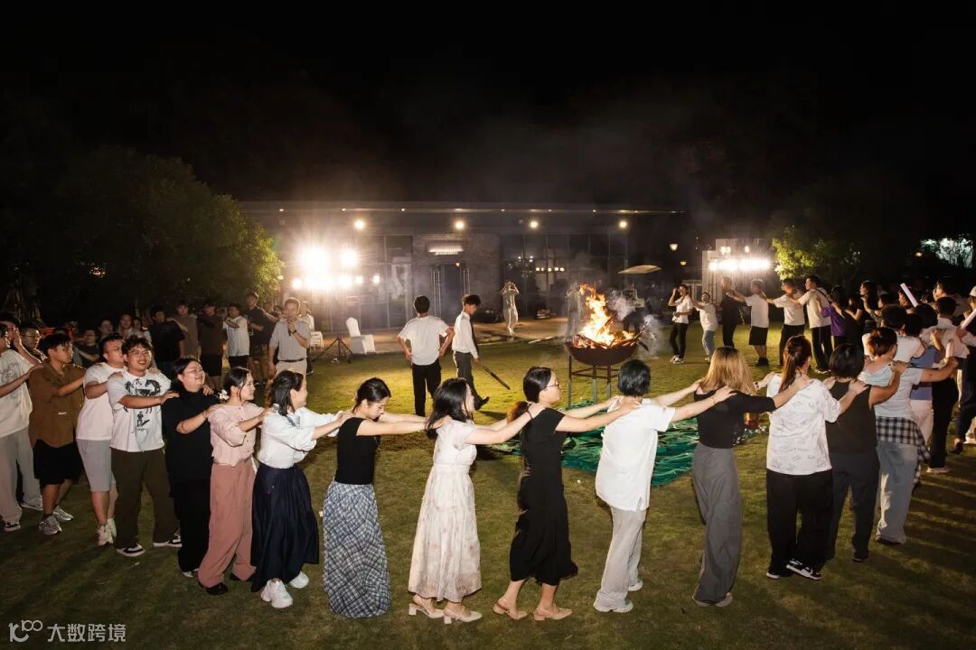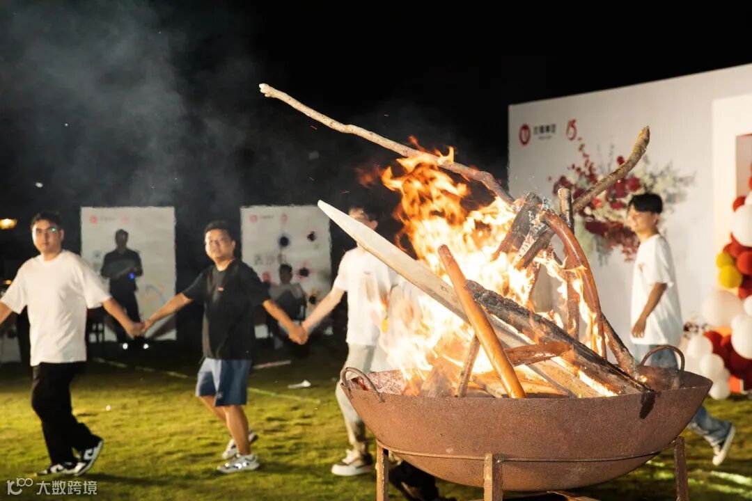 庆典最后,篝火晚会如期拉开帷幕。总经理与十周年员工代表手持火把,迈着坚定的步伐围绕活动现场奔跑,每经过一位家人身边,便与对方击掌互动 —— 掌心传递的不仅是温度,更是过往并肩作战的默契,是此刻共享喜悦的热忱,更是未来继续同行的约定。当火把凑近柴堆,橙红色的火焰瞬间腾起,温暖的火光映亮夜空,也映亮每个优尊人的脸上。