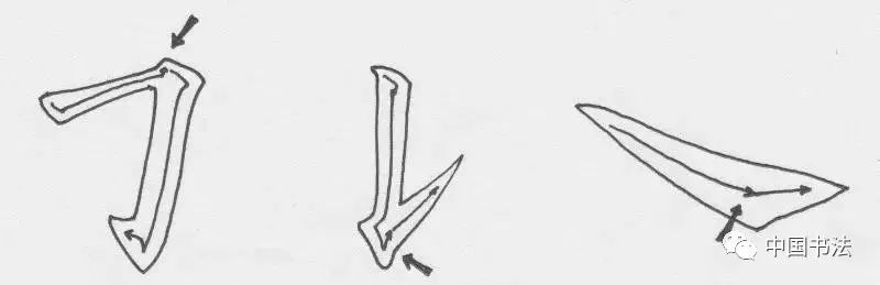 (2)笔刚顿即反挫撑起,笔腹离纸,笔毫沿上下方向平整展开(下展溢出的笔锋自然的形成b处劲利的棱角,绝不需刻意描画)。