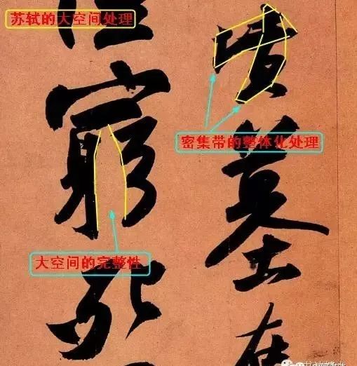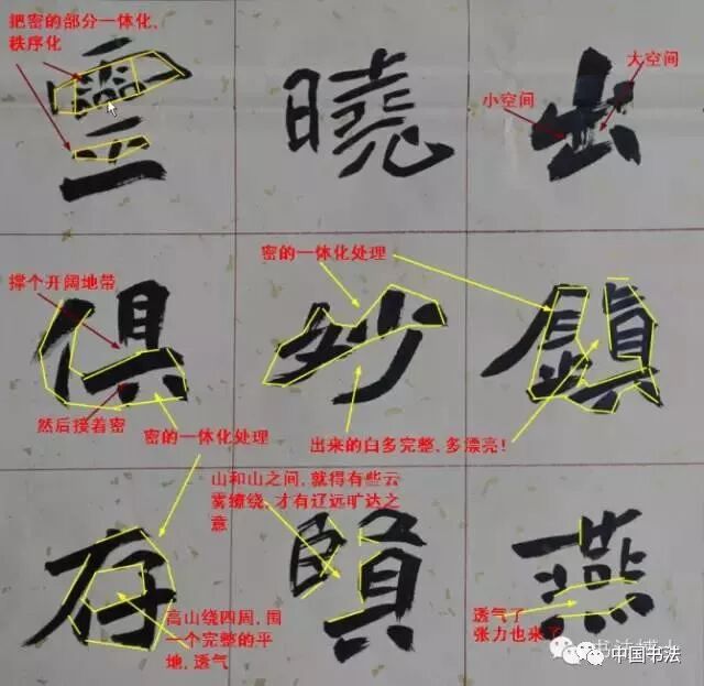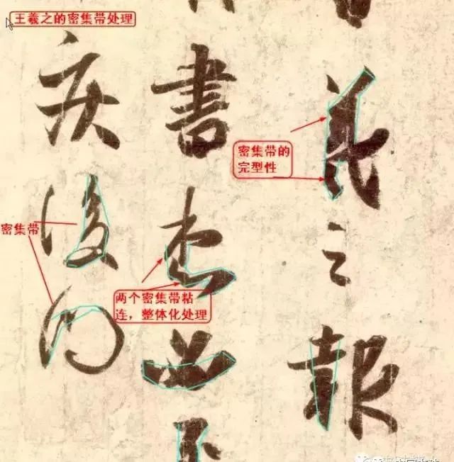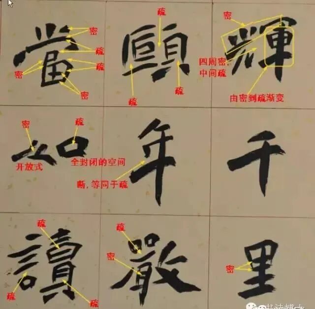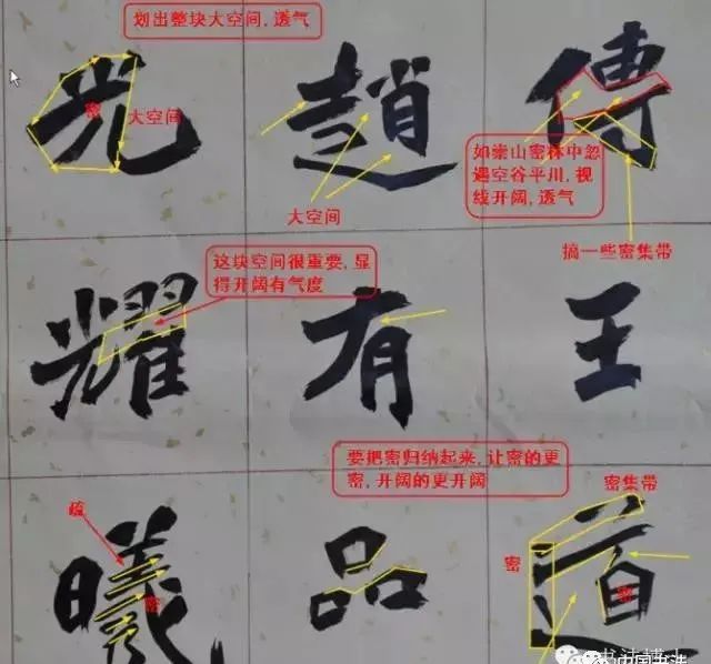 一是划出大空间,二形成密集带,让密的能有规律地排叠分布,让白的空间更加完整,面积更大。注意密和密的交接,使之秩序化、整体化。