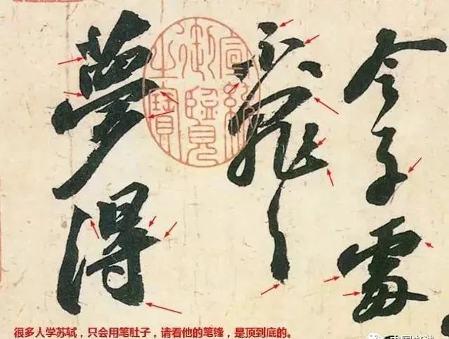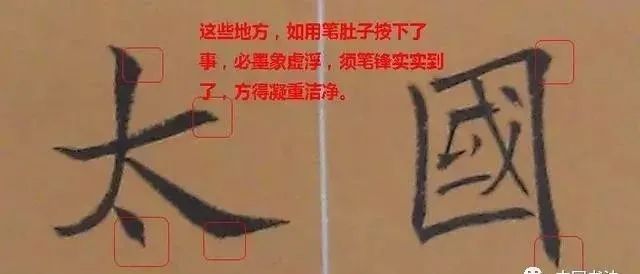 2、“笔锋无处不到”。任何一点一画,从始至终,四面八方,都应是笔锋运走形成的。如写一点顿下后,须顿中有提,使笔锋走至原笔腹按下的位置,使笔力充分作用于纸面,如此方得收笔处坚实凝重的笔触。