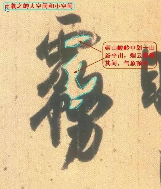 开合之法,不外有四:一是线方向的聚散开合,二是弧度的张力——用俯仰向背表现聚散开合,三是线条的间距——用疏密节奏表现聚散开合。四是大空间和小空间的运用,如在森森然的高峰雪岭间突现山谷平川,有气象开阔、云气流荡、开合吞吐、以虚衬实的空间效果。得此四者,气象生焉。