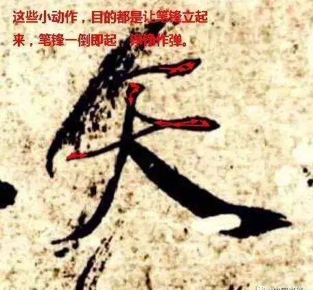 初学者可能开始时体会不到锋端的弹力,锋立不起来,可用薄长如竹蔑一类柔而有弹性之物,做用力压下又竭力撑起的动作,注意力放在尖端上,领会其运动的技巧,再运用到毛笔上,相信不难掌握。