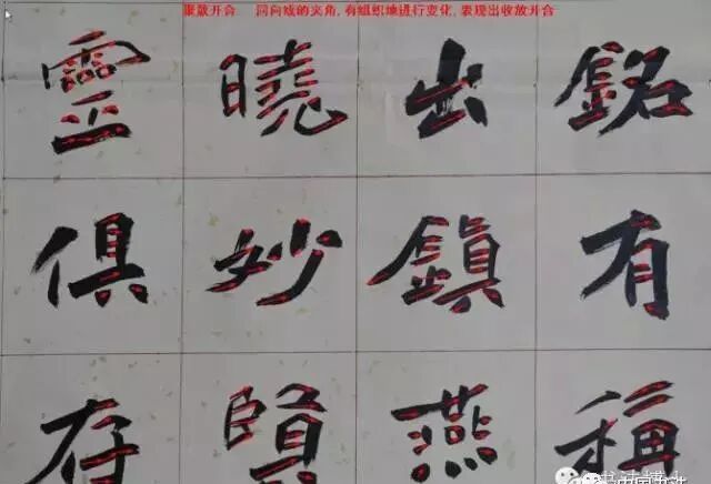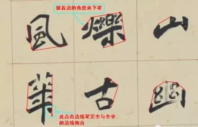 如图一些书法教材介绍写魏碑或欧体的方笔