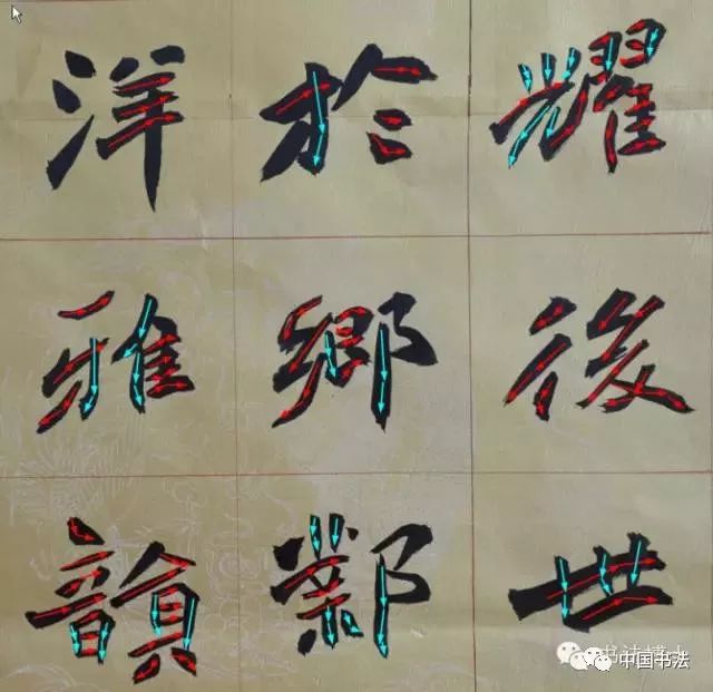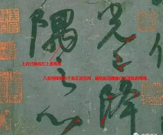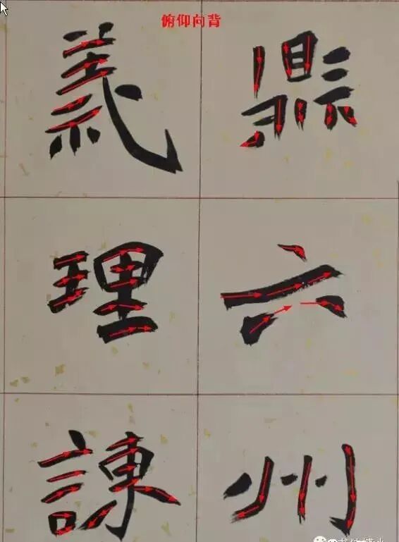 八面用锋的原则,指笔向不同的方向走动,应施以相应的笔画着纸运行。