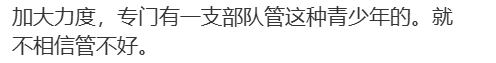 “加大力度,专门成立青少年巡查组,不相信管不好。”
