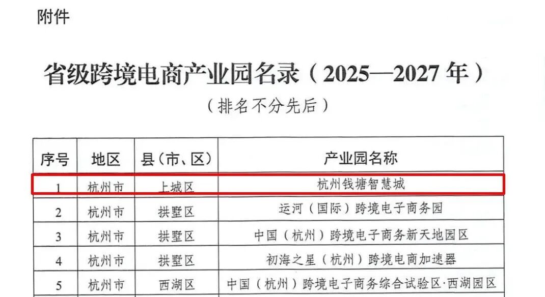 为促进“直播+平台+跨境电商”三位一体融合发展,打造一流跨境电商发展生态,根据《浙江省加力推动跨境电商高质量发展行动计划(2024-2027年)》部署和商务部相关文件精神,近日,浙江省商务厅正式公布了省级跨境电商产业园名录(2025-2027年),杭州钱塘智慧城名列其中!